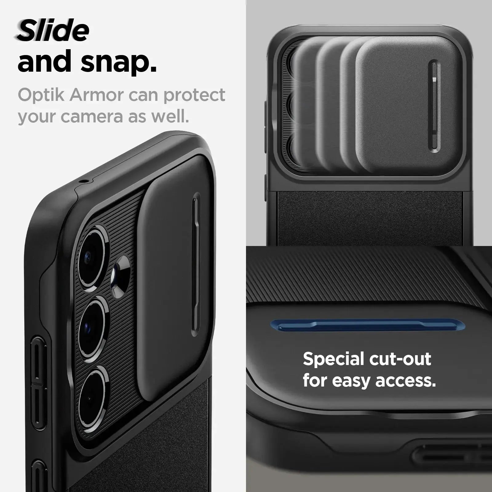 Be ready to shoot your shot. The Optik Armor® introduces Snap Lens Protection Technology™, a buttery-smooth camera cover that guards against drops, fingerprints, and debris. Plus, non-bulky pockets are always good optics.