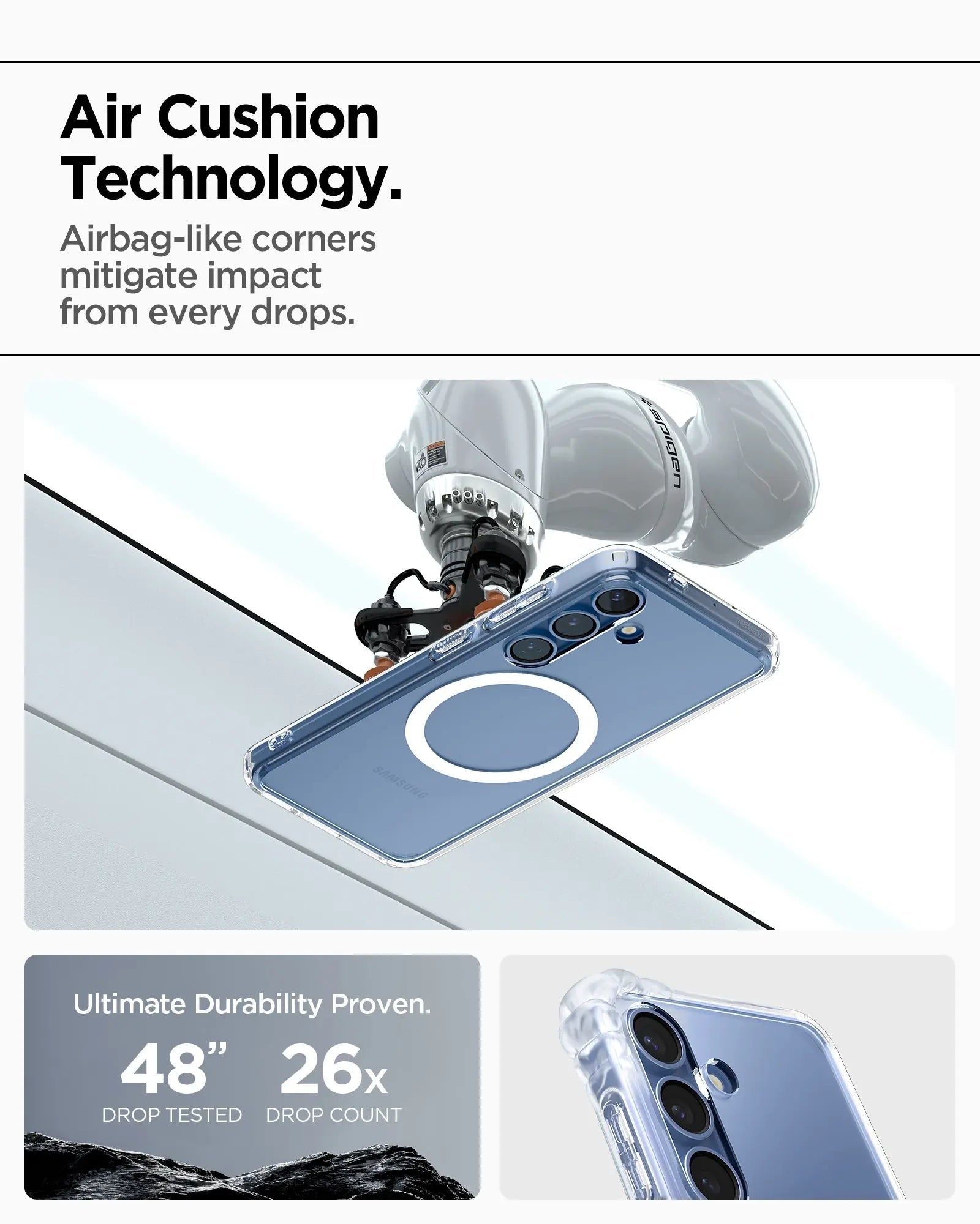 Military-grade drop protection via Air Cushion Technology
