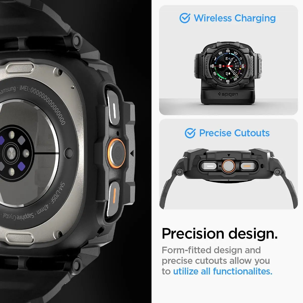 Be rugged around the clock. Protect time with the Rugged Armor Pro for your Galaxy Watch. Its unibody design absorbs shock for protection anytime, anywhere. Whether youโรรดre going to the gym, a hike, or to the officeโรรฌ We got you.