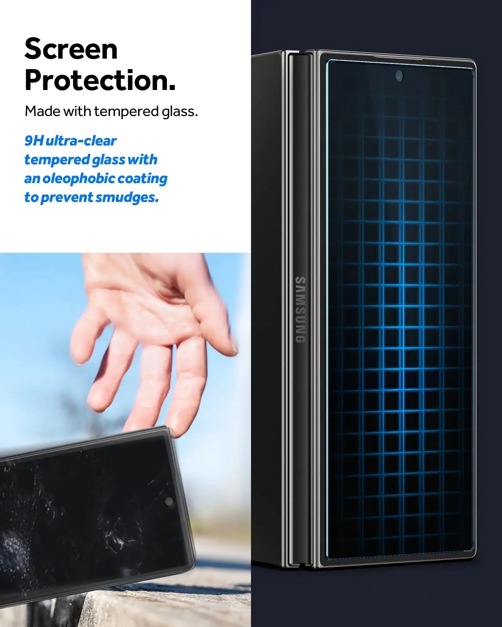 Say good bye to unseemly bubbles and fussing with your screen protector's fit—Caseology's Snap Fit is the hassle-free, high-tech solution to protecting your Galaxy Z Fold 6 screen. Our installation tray is an excellent guide to give you a flawless application, every time. Tempered glass is designed to work seamlessly with your device's fingerprint reading, while providing protection that won't compromise your phone’s natural feel. Oleophobic coating keeps it smudge-free for longer. Stay protected with premium, scratch-resistant protection that wards off all the sharp edges in your life and keeps your Galaxy Z Fold 6 looking fresh out the box.