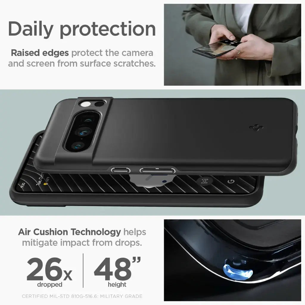 - Military-grade drop protection via Air Cushion Technology