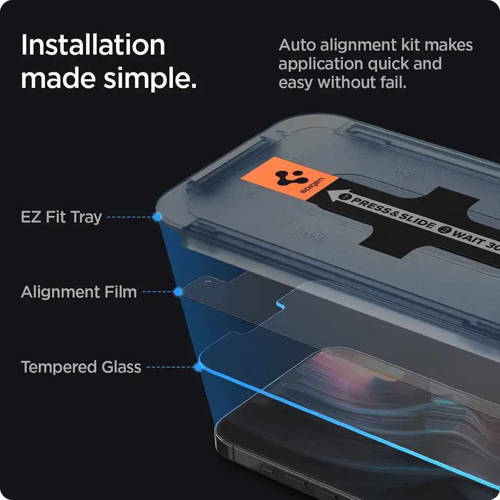 Less time, guaranteed alignment. The newest Glas.tR EZ Fit comes with an innovative tray designed to eliminate the time wasted to achieve the greatest alignment. Simply place the tray over the phone, press the center and watch the glass adhere in place. Shield the screen with 9H hardness Glas.tR EZ Fit with the latest and easiest technology.