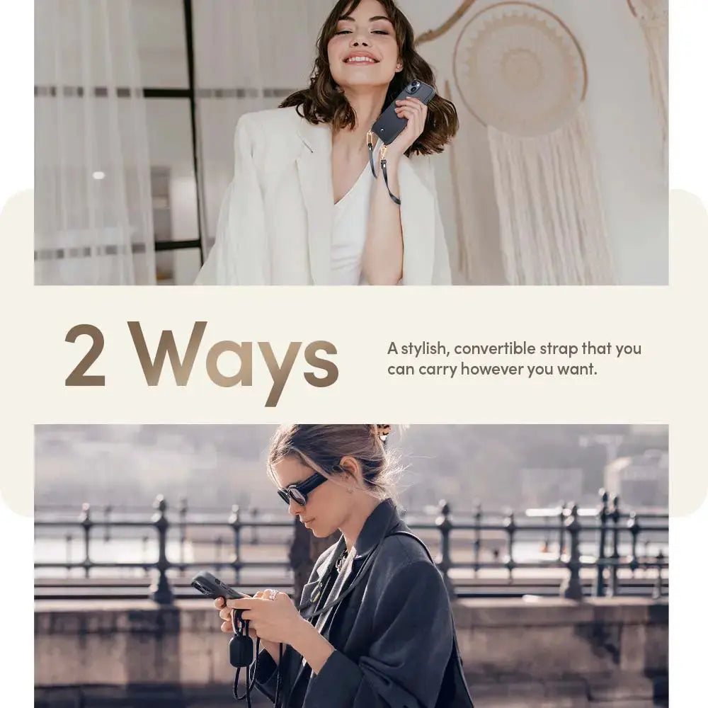 Stress less about dropping your phone with Classic Charm’s synthetic leather strap that is sturdy, adjustable, and detachable. Two ways to wear: as a crossbody or as a wrist strap.