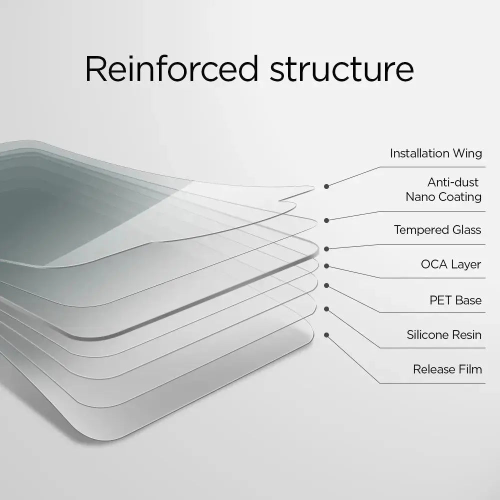 - Its tempered glass features 9H hardness to handle everyday scratches with a design exclusively made to stay on with all Spigen cases.