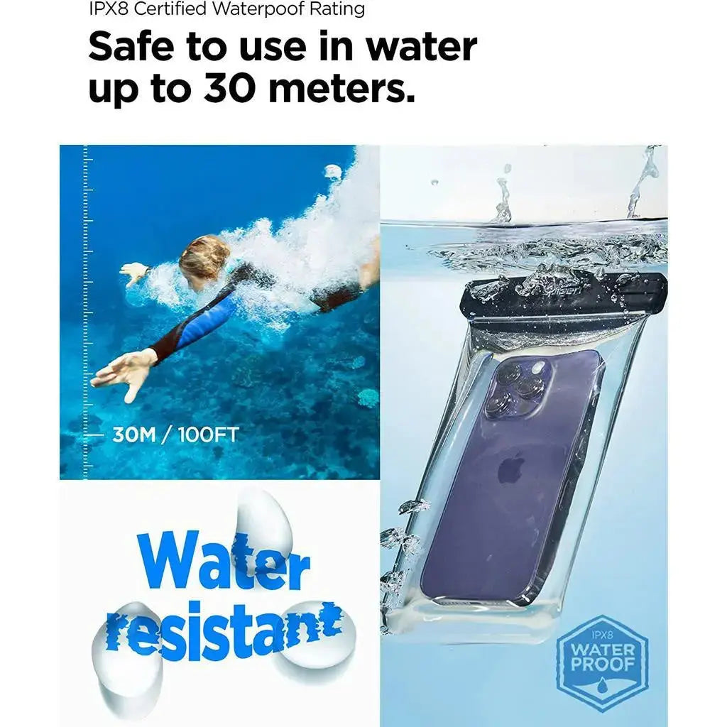 ‚óè(IPX8 Certified) Spigen's state-of-the-art technology has acquired the highest level of waterproofing grade IPX8. Water resistant up to 30 minutes at a depth of 98.4 ft (30 m)