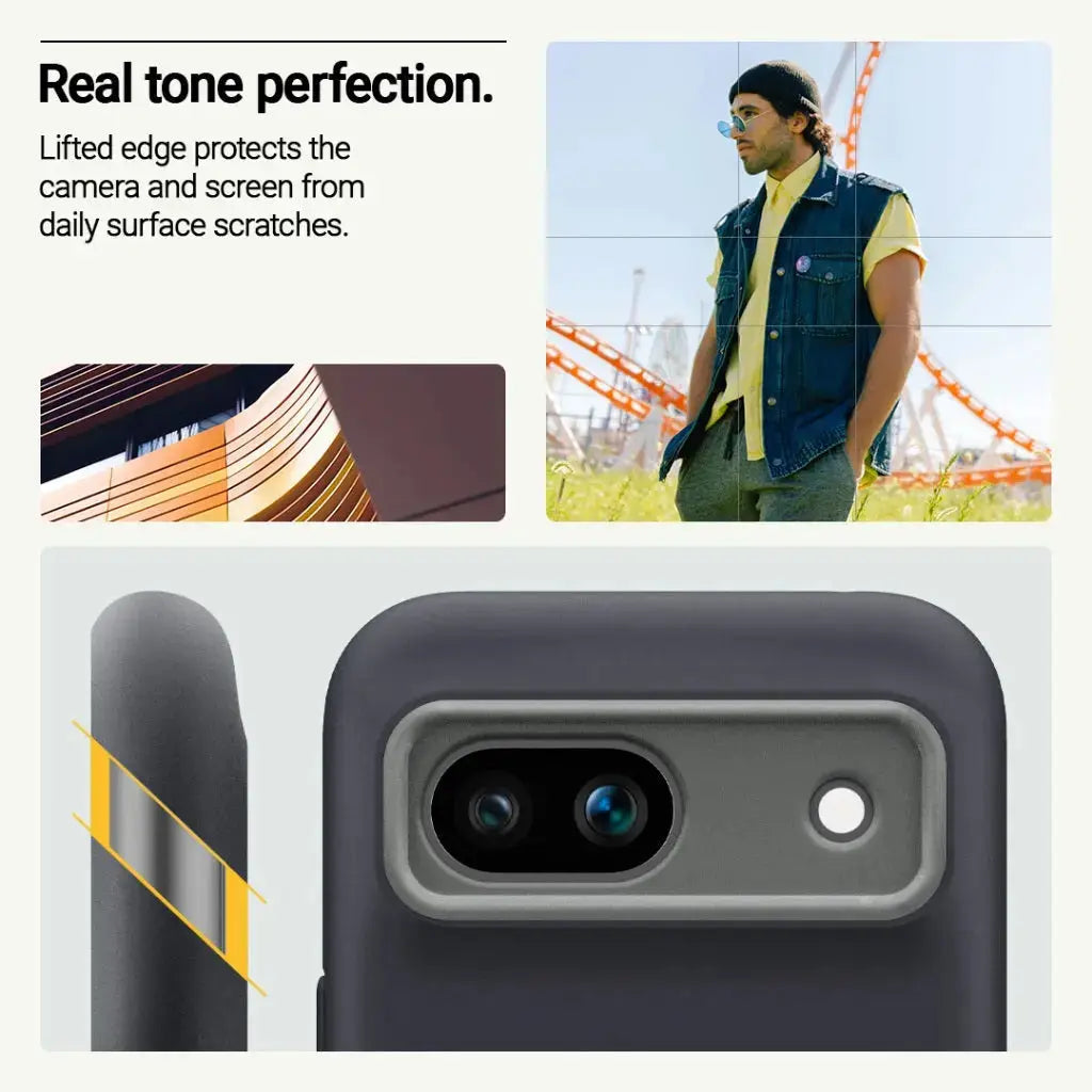 Bold, contrasting two-tone colors and protective raised camera ring design creates a sporty and playful look