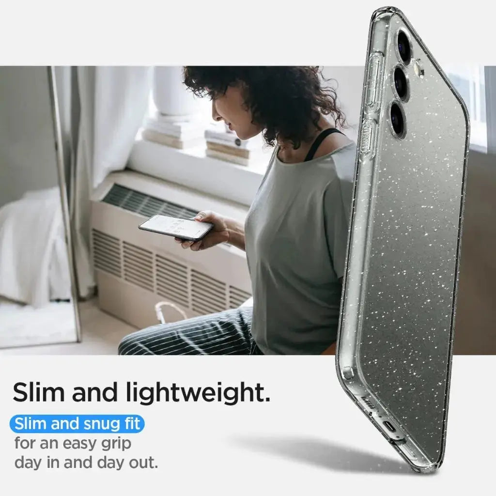 Shining. Shimmering. Protected. Liquid Crystal Glitter streamlines a whole new dimension to your Galaxy S23. Its form-fitting design keeps everyday dings and scratches away. Wherever you go, always behold the splendid style of your Galaxy.