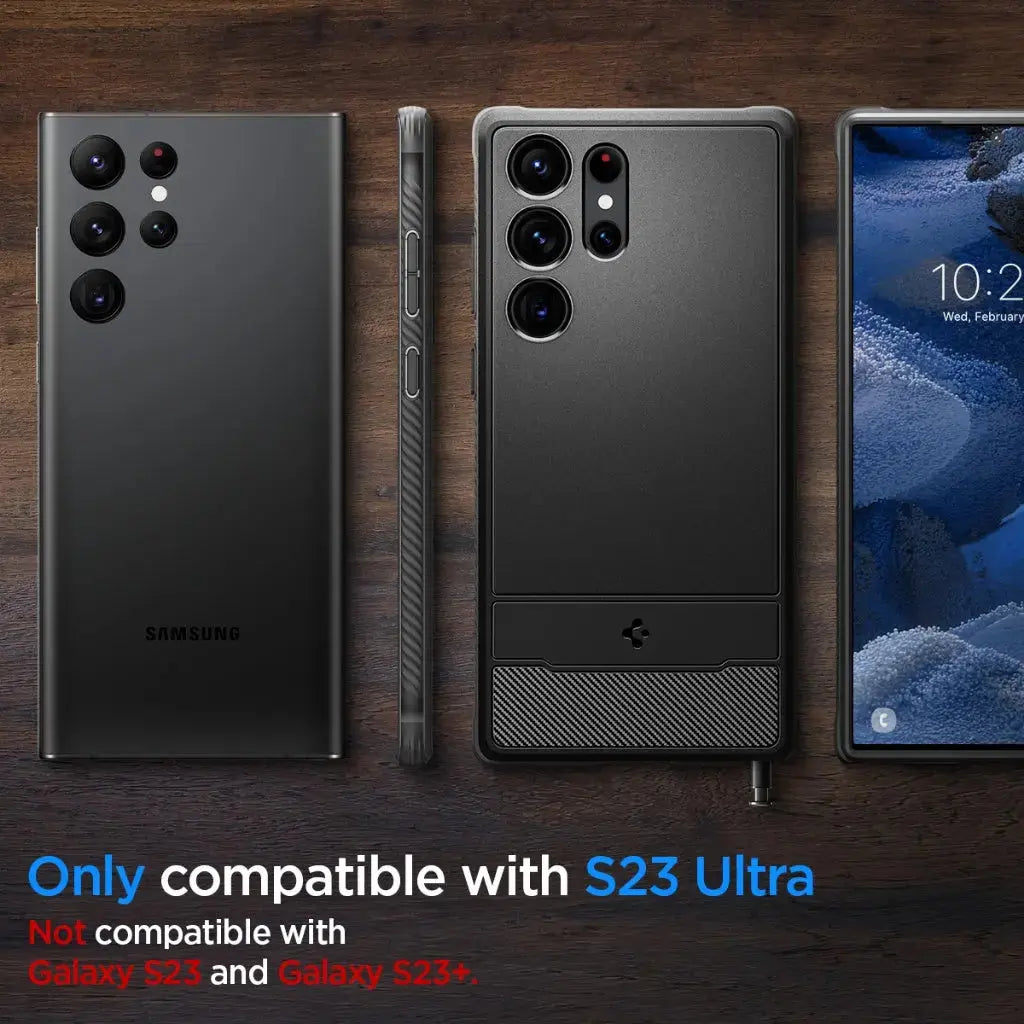Rugged refined. Rugged Amor Galaxy S23 Ultra Case celebrates a decade of protection with an all-new design for your Galaxy S23. Bolstered with extra bumper protection on all corners, yet drives home a modern and sleek profile with its carbon fiber detailing. Always be ready to pack a punch.