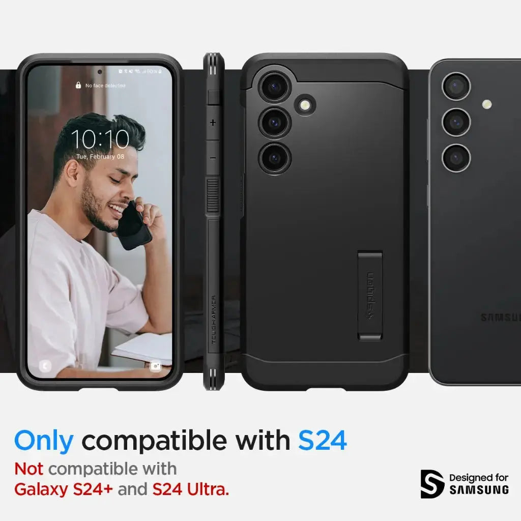 Toughen it up. The Tough Armor Galaxy S24 case champions your Galaxy with full-fledged protection. Forge on with a bolstered yet sleek shield for confidence against bad days and bad drops. Kickback with a built-in kickstand for unbeatable convenience. We got you.
