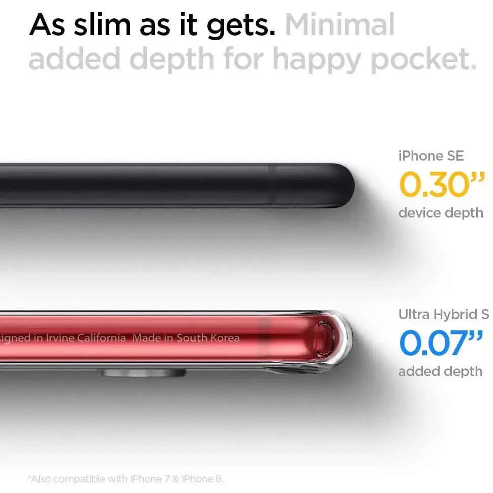 Spigen iPhone SE (2022 / 2020) / iPhone 8 / iPhone 7 Case Ultra Hybrid S - Take advantage of our newly designed Ultra Hybrid S that now comes with our best-selling, Spigen kickstand. The Ultra Hybrid S is ideal for minimal enthusiasts that seek an upgrade. Our magnetic kickstand provides one-touch accessibility and the ultimate hands-free viewing experience. The case’s transparency displays your iPhone with crystal clarity while also enhancing every bit of its contour and design with exceptional precision. Our Crystal Hybrid S includes everything you need - protection, style and functionality.
