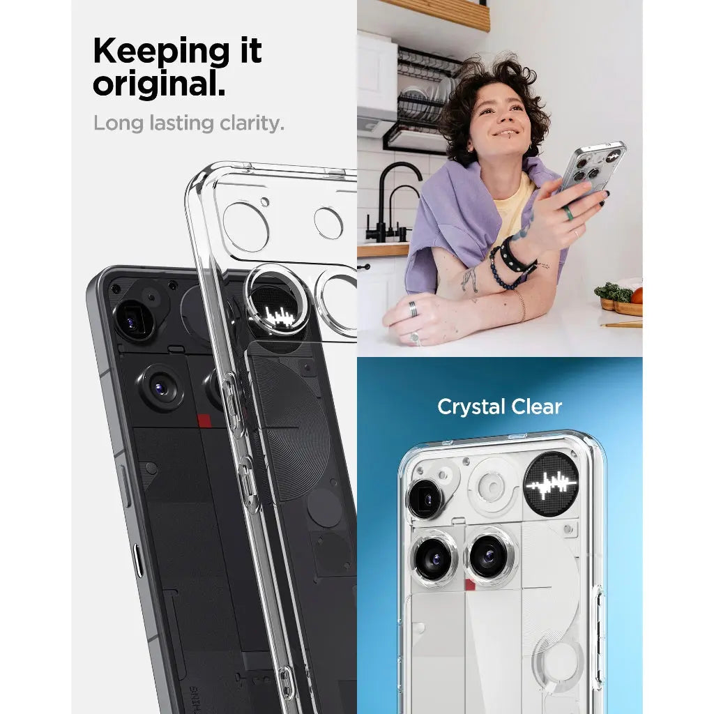 Nothing Phone 3 Case Ultra Hybrid is the optimum case for showcasing the sleek design of the Nothing Phone while giving it the protection it deserves. The hybrid construction combines a shock-absorbent bumper with a clear back designed for long-lasting clarity. Its simple makeup maintains a slim frame that works with wireless charging, while precise cutouts keep features readily available. Preserve the look of the Nothing Phone with secured drop defense by encasing it with the Ultra Hybrid®.