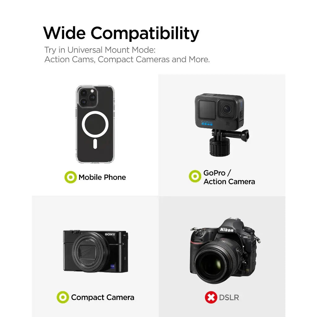 [UNIVERSAL MOUNT MODE] Included 1/4-inch screw module provides wide compatibility, including mobile phones, GoPro, and compact camera